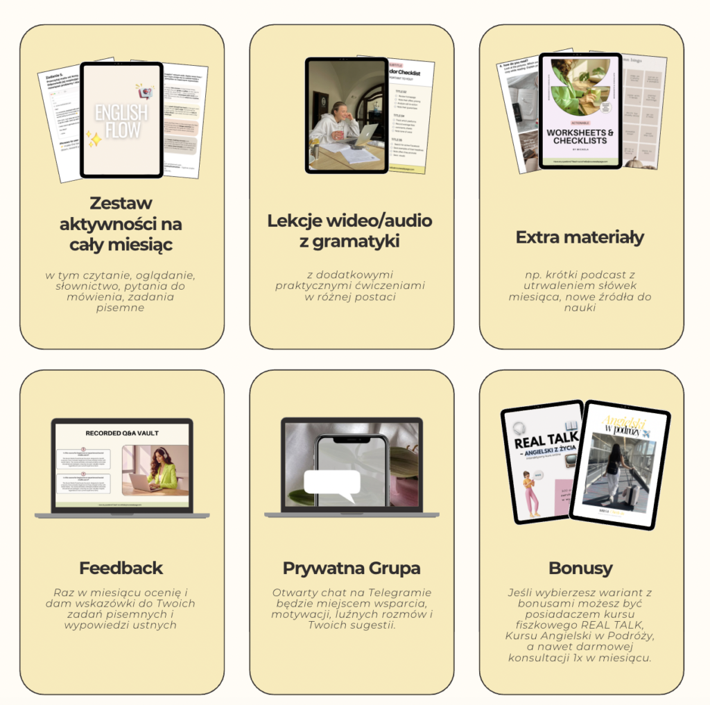 💻 dostęp do kursu Angielski w Podróży oraz do kursu fiszkowego REAL TALK – Angielski z życia